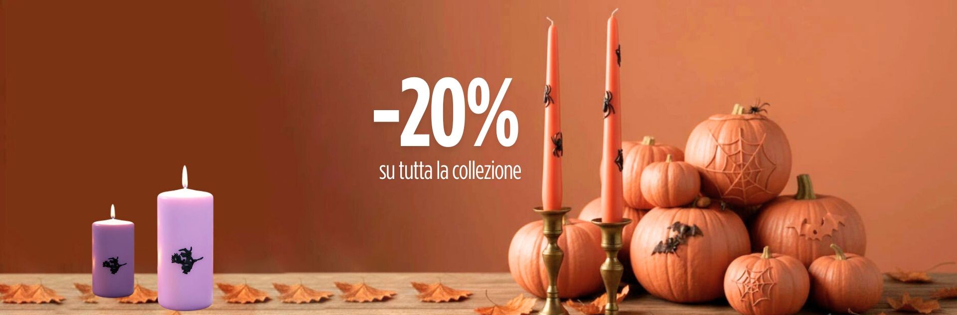 2 Candele con Ragnatele in cera Ø 2,2, h 25 cm - 2 pezzi - Zucca